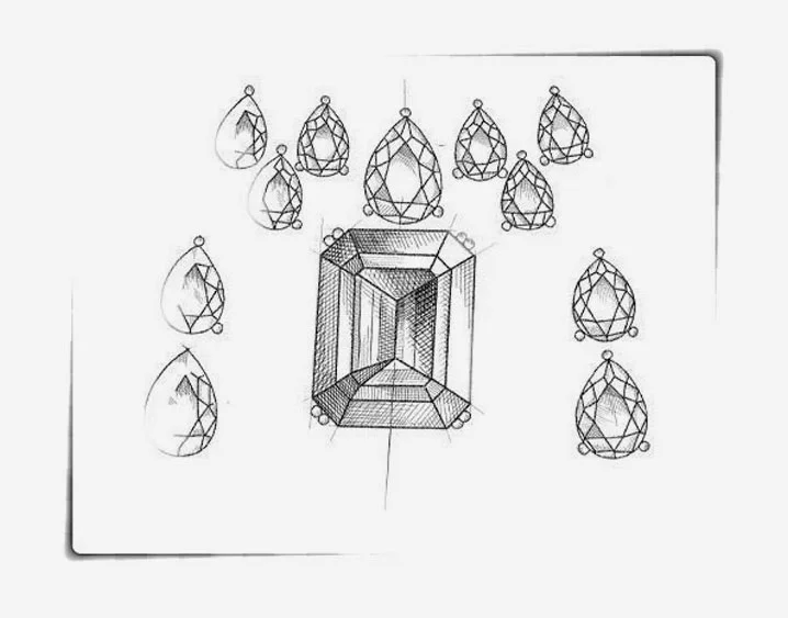 Hruškový tvar, známý také jako kapkovitý brus, kombinuje zaoblený konec se špičatou špičkou. Jeho jedinečná silueta je oblíbená u náušnic, přívěsků a prstenů. Protáhlý hruškovitý tvar může jemně prodloužit prsty a vytvořit tak elegantní vzhled.